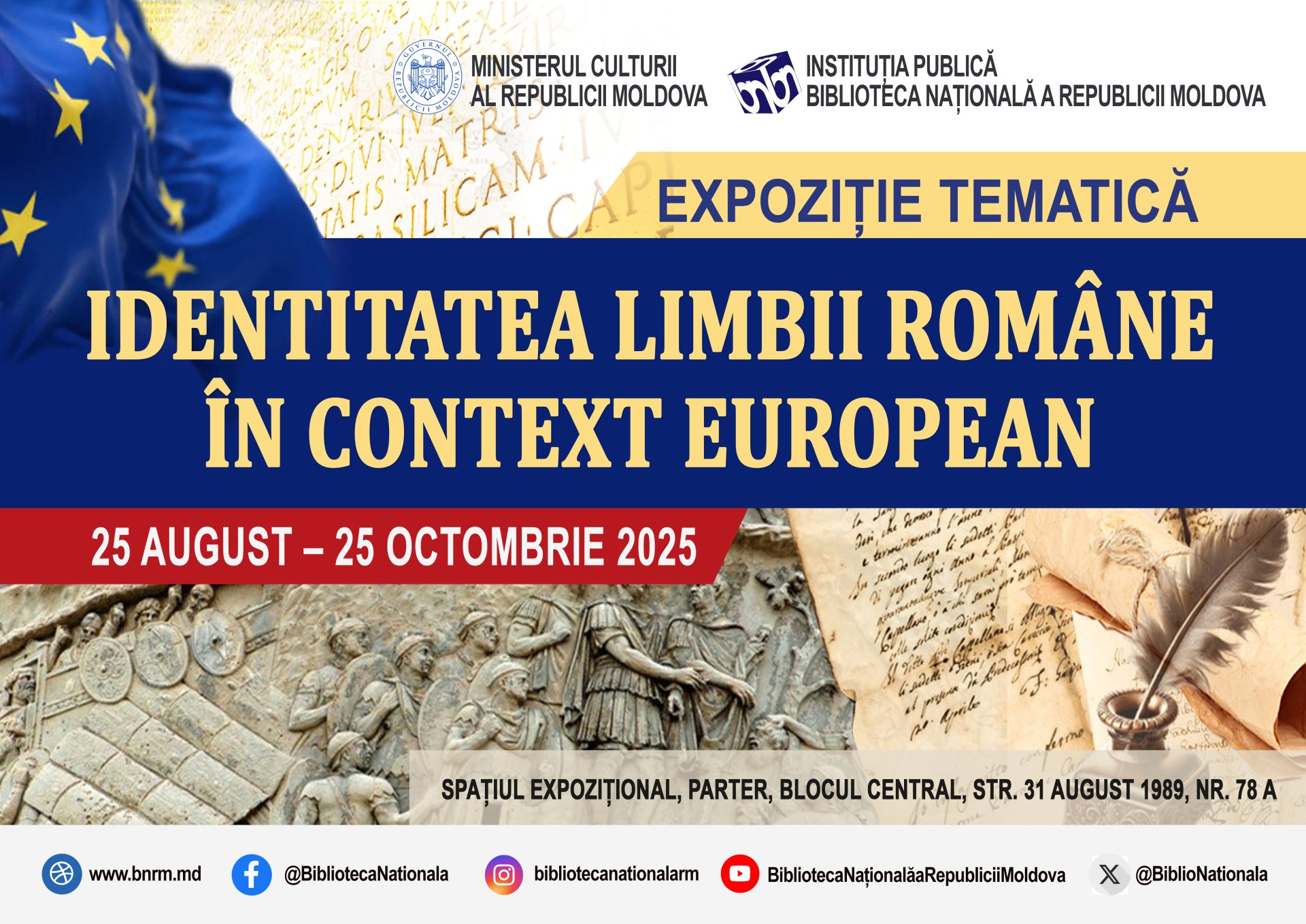 Cu prilejul sărbătorilor naționale, Biblioteca Națională a Republicii Moldova organizează expoziția tematică „Identitatea Limbii Române în context european”, deschisă publicului în perioada 25 august – 25 octombrie. Expoziția își propune să valorifice documentele din colecțiile Bibliotecii Naționale, care oglindesc contribuția Limbii Române, limba oficială în UE din 2007, vorbită de peste 25 milioane de oameni, transmite MODPRES.