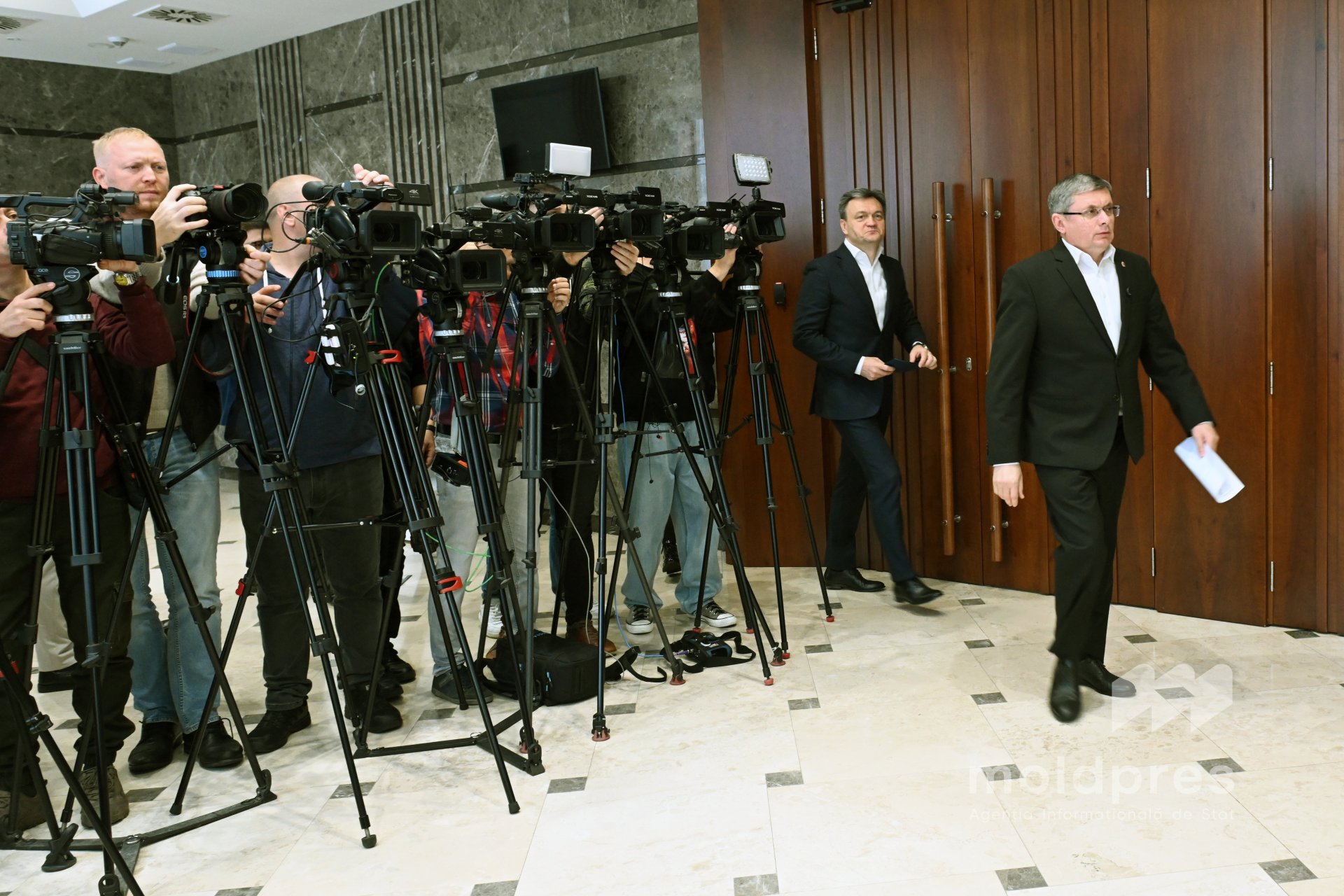 La două săptămâni de la desfășurarea alegerilor parlamentare, președintele Parlamentului și liderul Partidului Acțiune și Solidaritate (PAS), Igor Grosu, împreună cu prim-ministrul Dorin Recean, au susținut declarații de presă.