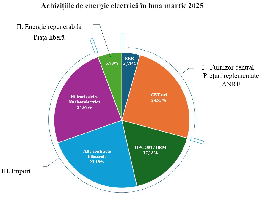 Both the quantity of electricity and the average purchase price were lower in March, compared to February 2025, when Energocom acquired a total of approximately 403,000 MWh from the local market and imports at a weighted average price of 137.53 EUR/MWh. This cost is below the purchase price ceiling included in the current tariff set by the National Energy Regulatory Agency (ANRE) - 145 EUR/MWh.