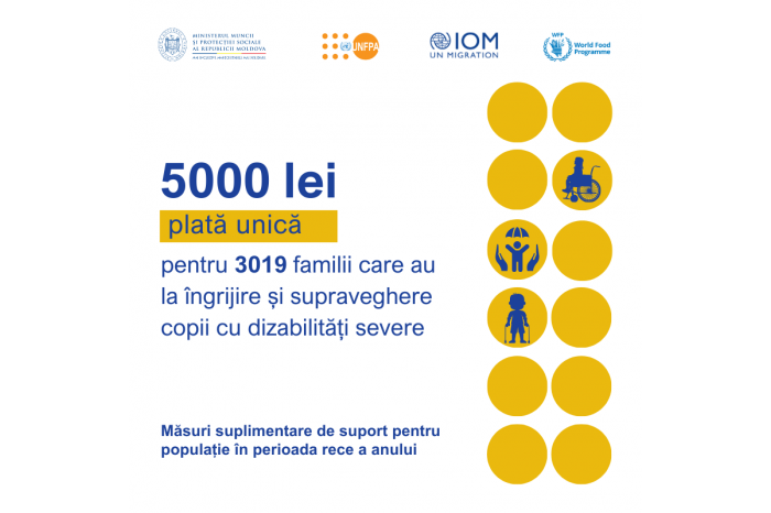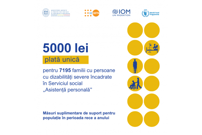 5,000 lei for 7,195 families with disabled persons included in the Personal Assistance service, 5,000 lei for 1,261 pregnant or breastfeeding women with children between 0 and 13 months, beneficiaries of social assistance.