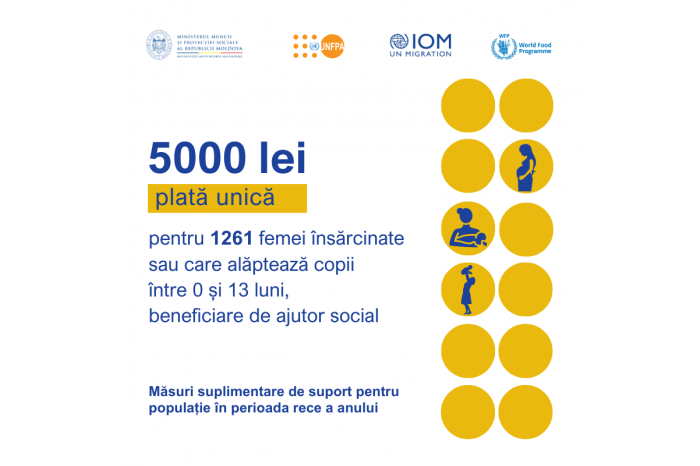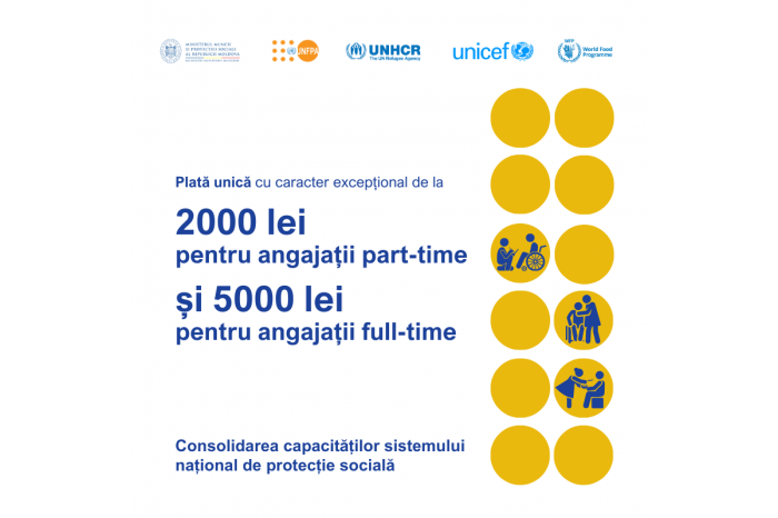 A support package was launched for Strengthening the capacities of the national social protection system, which consists of one-off payment of an exceptional nature established for certain categories of employees in the social protection to motivate and support their dedication and performance.