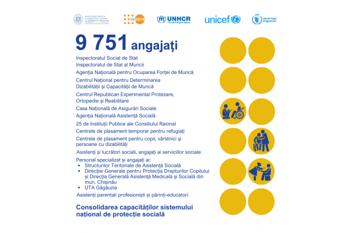 With the support of several UN agencies, 9,751 employees of institutions in the social sector will receive a salary increase starting from 2,000 lei for part-time auxiliary staff and from 5,000 lei for full-time specialized and basic staff.