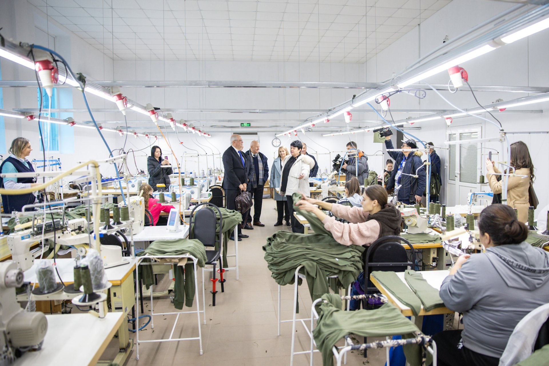 The PM visited two resident businesses of the Business Incubator, including the textile factory Ghekatex - Group, which has branches in Comrat, Vulcanesti, Basarabeasca and exports garments including to Italy and Australia. The prime minister also spoke with entrepreneur Serghei Col, who manages a small car accessories manufacturing business.