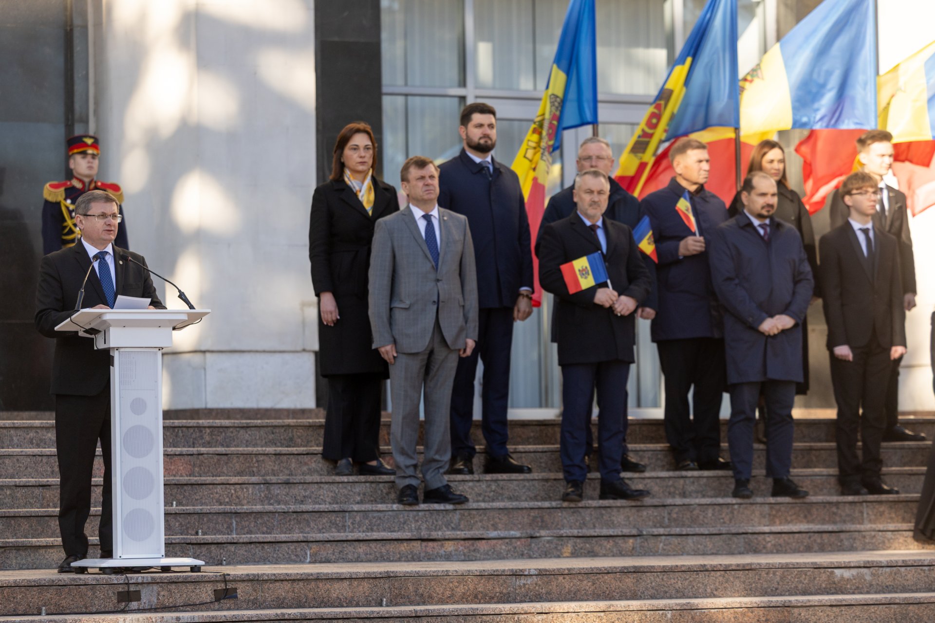 Speaker Igor Grosu, together with members of Parliament and the Government took part in a ceremony dedicated to State Flag Day. Today, the Republic of Moldova marks 36 years since the tricolor was adopted as a symbol of our sovereignty, independence and national identity.