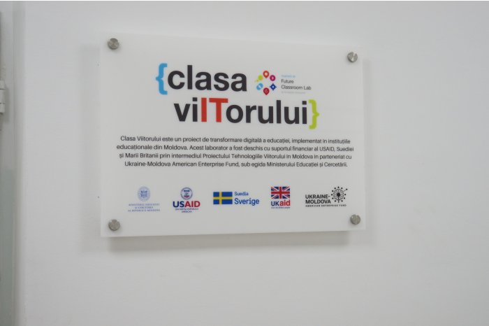 The launch of the new room, Classroom of the Future, at the N. Tretiakov Lyceum was possible due to the cooperation between the Education and Research Ministry, local authorities, Future Technologies Activity in Moldova Project (Innovate Moldova), financed by the U.S. Agency for International Development (USAID) Moldova, Sweden (Embassy of Sweden in Chisinau) and the United Kingdom (UK in Moldova - British Embassy Chisinau) and Ukraine-Moldova American Enterprise Fund and the coordination of the National Centre for Digital Innovations in Education, Classroom of the Future.
