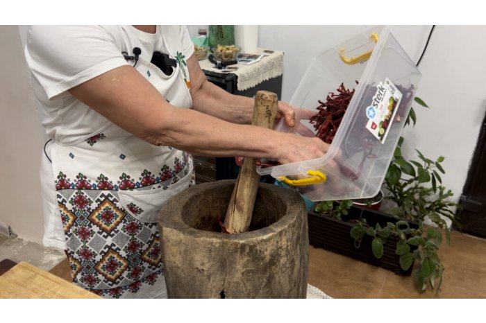 Maria Minciuna has no note book for recipes, but has been keeping them in mind since her childhood. During 40 years, she has been cooking for thousands of guests, at various parties. Yet, in the last several years, the housewife was receiving guests just at her home. The unparalleled jams she cooks are the stars of the workshop. Maria Minciuna says that, for her wish to experiment new recipes, she has got to make jams of pepper, figs, common elder flowers, acacia flowers and even out of cherry tomatoes.