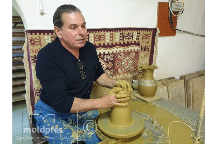 Moreover, the craftsman likes to repeat in the work process: I am a machine. However, this machine is in the good sense of the word and processes some master-classes. The potter from Hogineşti states that, by the man's hand that he places on the pot on the wheel, he understands everything about the person and every time his demonstration at the working wheel is a show of a clairvoyant artist-magician.