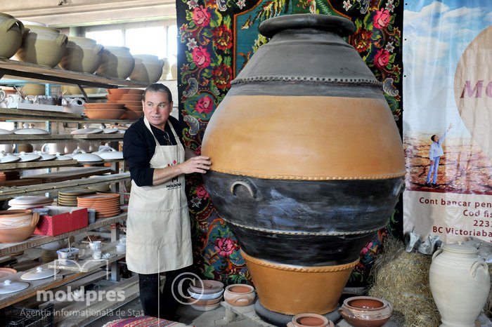 The project "Slăvim Moldova de Acasă" belongs exclusively to the artist Vasile Gonciari, in which the master invests all his time, enthusiasm and creativity. There is also a large clay vessel here, with a capacity of about 20 thousand liters, which is to be included in the Guinness Book of Records. According to the potter, for this work he needed 33 days of modeling, 36 hours of firing and two days for cooling.