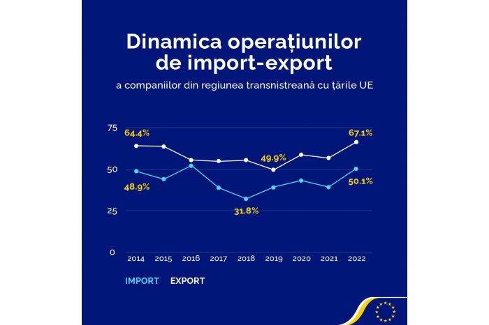 An analysis presented yesterday by the EU Delegation to Moldova reads that last year, the turnover of the region in terms of exports represented 67.1%, which means a 10.2% increase compared to the previous year.