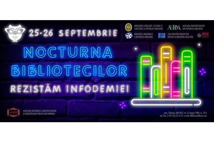 Chişinău, 23 sep. /MOLDPRES/. Asociaţia Bibliotecarilor din R. Moldova, în parteneriat cu Ministerul Educației Culturii și Cercetării, Irex Europe și Asociația Națională a Bibliotecarilor și Bibliotecilor Publice din România, organizează în perioada 25-26 septembrie Campania Nocturna Bibliotecilor 2020, care are drept scop promovarea bibliotecilor, informează MOLDPRES.