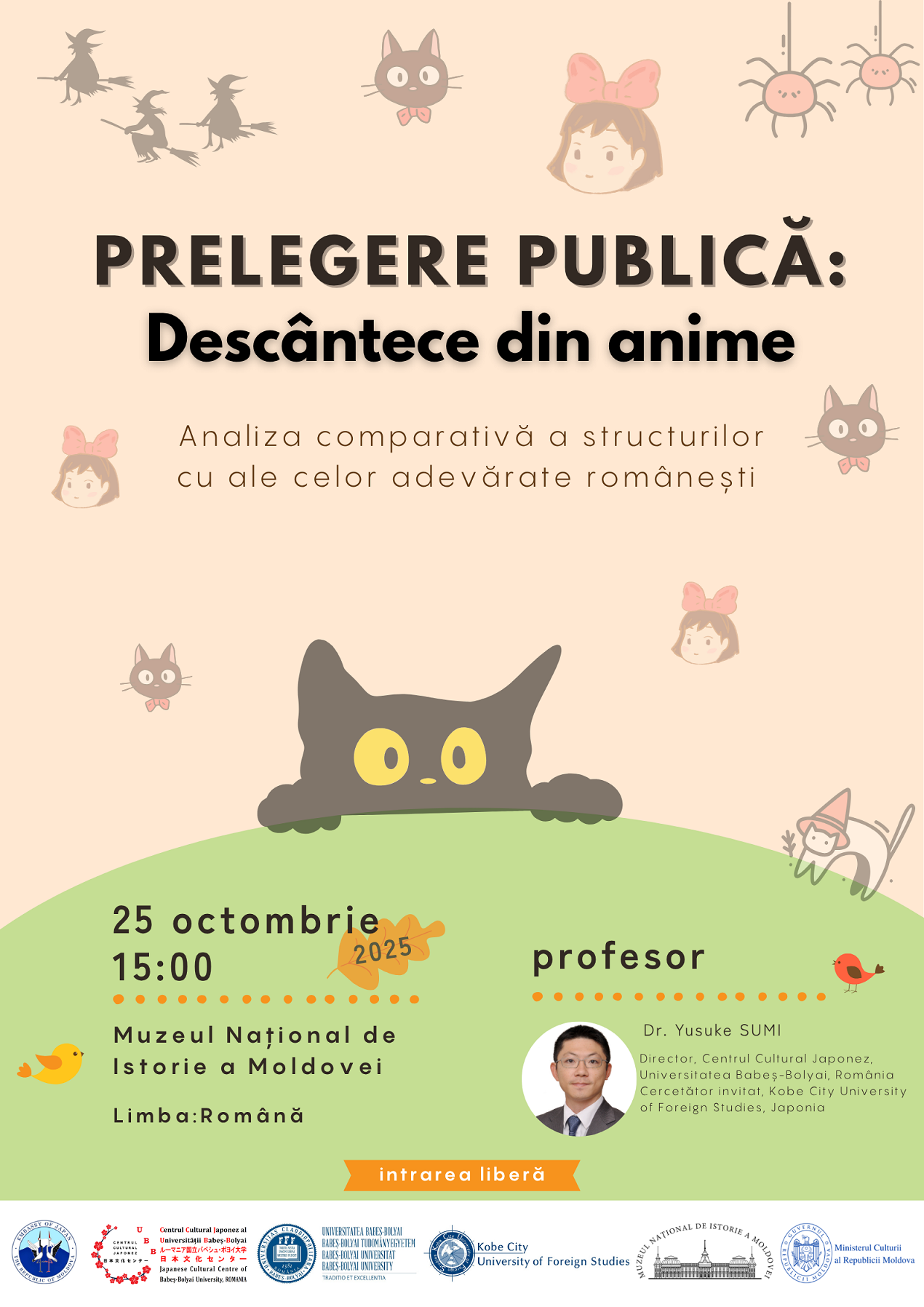 - Prelegere „Descântece din anime” – 25 octombrie, ora 15:00: Dr. Yusuke Sumi va analiza conexiunile dintre descântecele din anime și cele tradiționale românești.