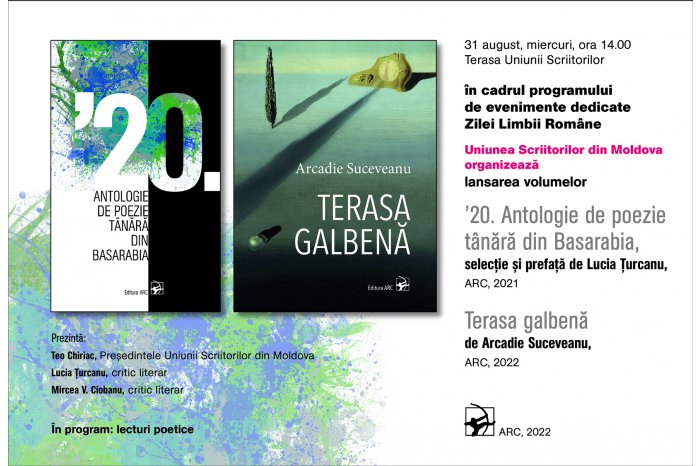 La ora 12.00, la Universitatea de Stat din Moldova va fi inaugurată cea de-a V-a ediție a Salonului Internațional de Carte Bookfest Chișinău. Începând cu ora 14.00, pe Terasa Uniunii Scriitorilor din Moldova vor fi lansate volumele ” ’20. Antologia de poezie tânără”, selecție și prefață de Lucia Țurcanu și ”Terasa galbenă” de Arcadie Suceveanu, iar la 15.00, la Biblioteca Municipală ”B.P. Hasdeu” - volumul „Maria Cosniceanu: în slujba numelui corect”, monografie bibliografică” + CD + versiune electronică (autori- alcătuitori Elena Ungureanu și Zinaida Tâmbur), dedicată reputatei lingviste Maria Cosniceanu, doctor în filologie, care a activat întreaga viață la Institutul de Filologie al AȘM. Tot la 15.00, la Centrul Expozițional ”Constantin Brâncuși” va fi inaugurată expoziția-concurs de artă plastică contemporană ”Saloanele Moldovei”, ediția a XXXII-a.