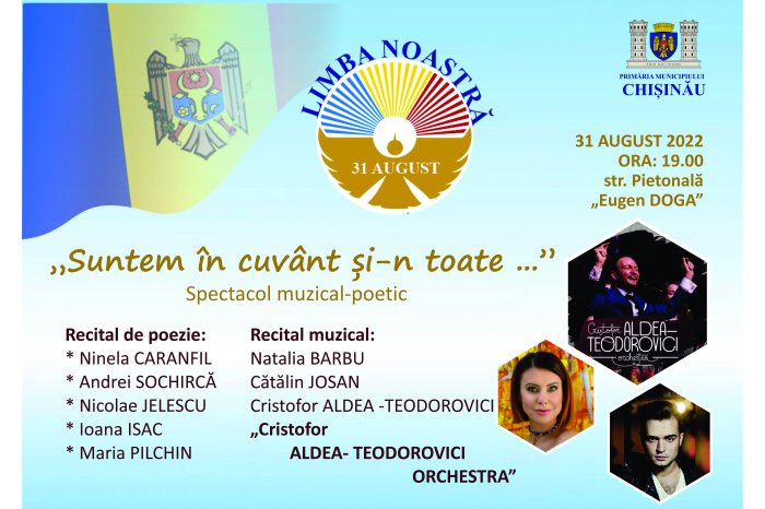 De asemenea, începând cu ora 19:00, pe strada Pietonală „Eugen Doga", Primăria Chișinău invită cetățenii să urmărească un spectacol de muzică și poezie cu genericul „Suntem în cuvânt și-n toate...", prezentat de Aldea Teodorovici Orchestra, Natalia Barbu și Cătălin Josan. În cadrul spectacolului va avea loc și promovarea poeziei autohtone de către: Ninela Caranfil, Nicolae Jelescu, Ioana Isac, Maria Pilchin și Andrei Sochircă.