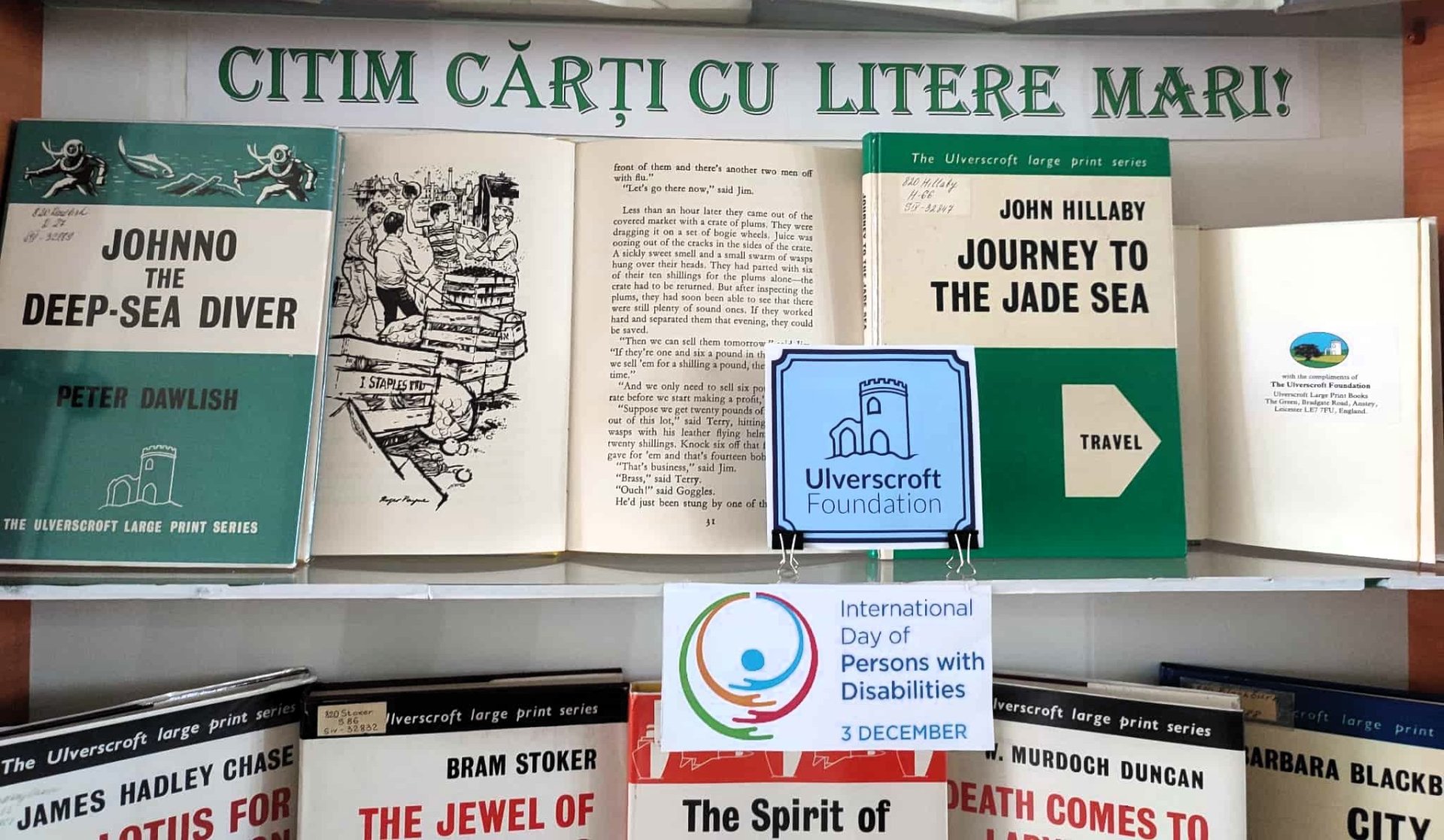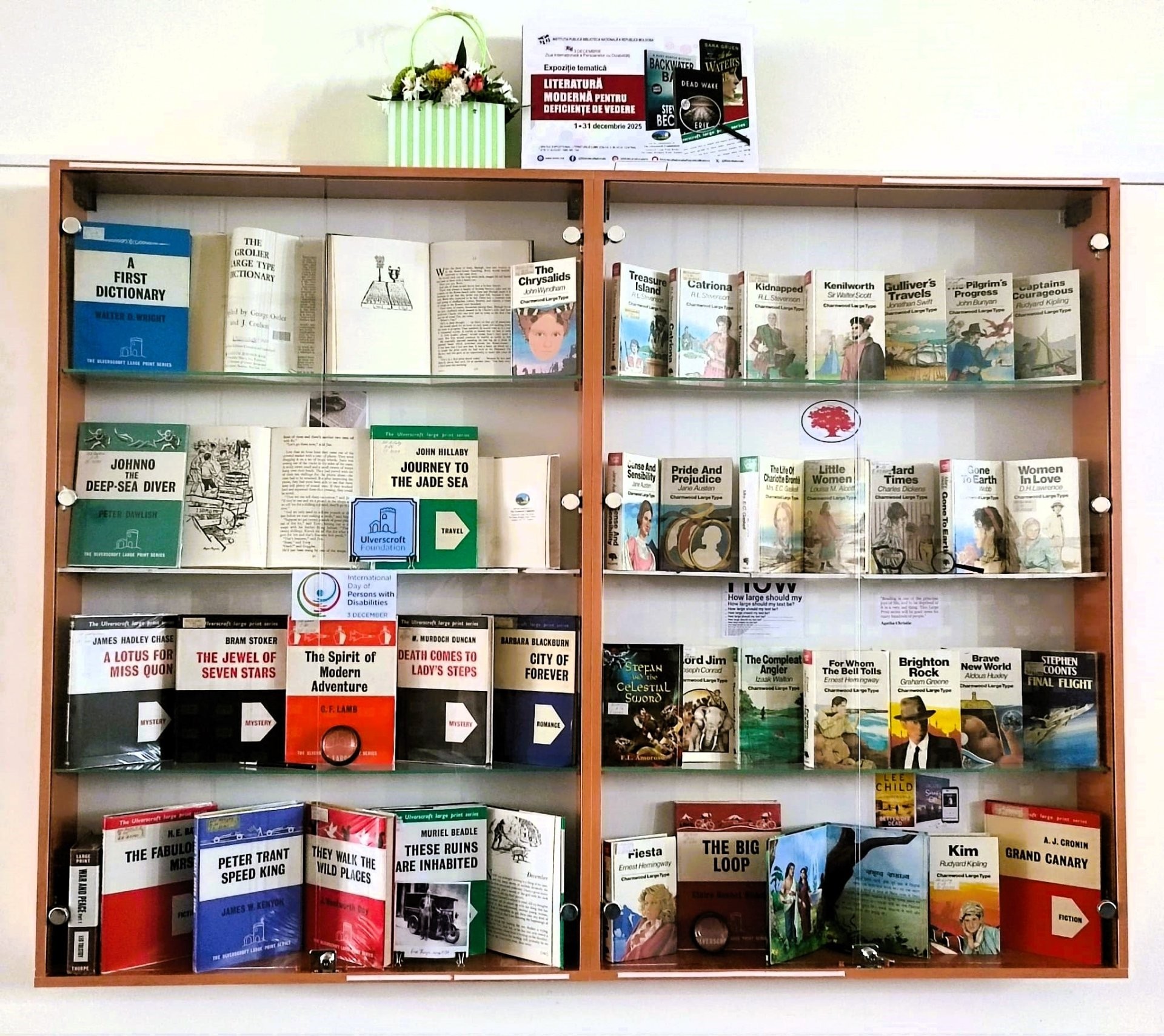 Printre volumele expuse se numără 50 de titluri din colecția Bibliotecii Naționale, editate de renumitele case editoriale britanice Ulverscroft și Charnwood. Expoziția include opere din literatura clasică engleză și americană, dar și lucrări ale autorilor din a doua jumătate a secolului XX, oferind cititorilor o selecție variată și accesibilă.