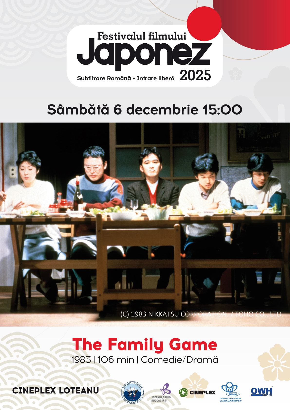 - Sâmbătă, 6 decembrie, ora 15:00 – „The Family Game” (1983, 106 min), regia Yoshimitsu Morita. Un meditator descoperă disfuncționalitățile unei familii aparent normale.