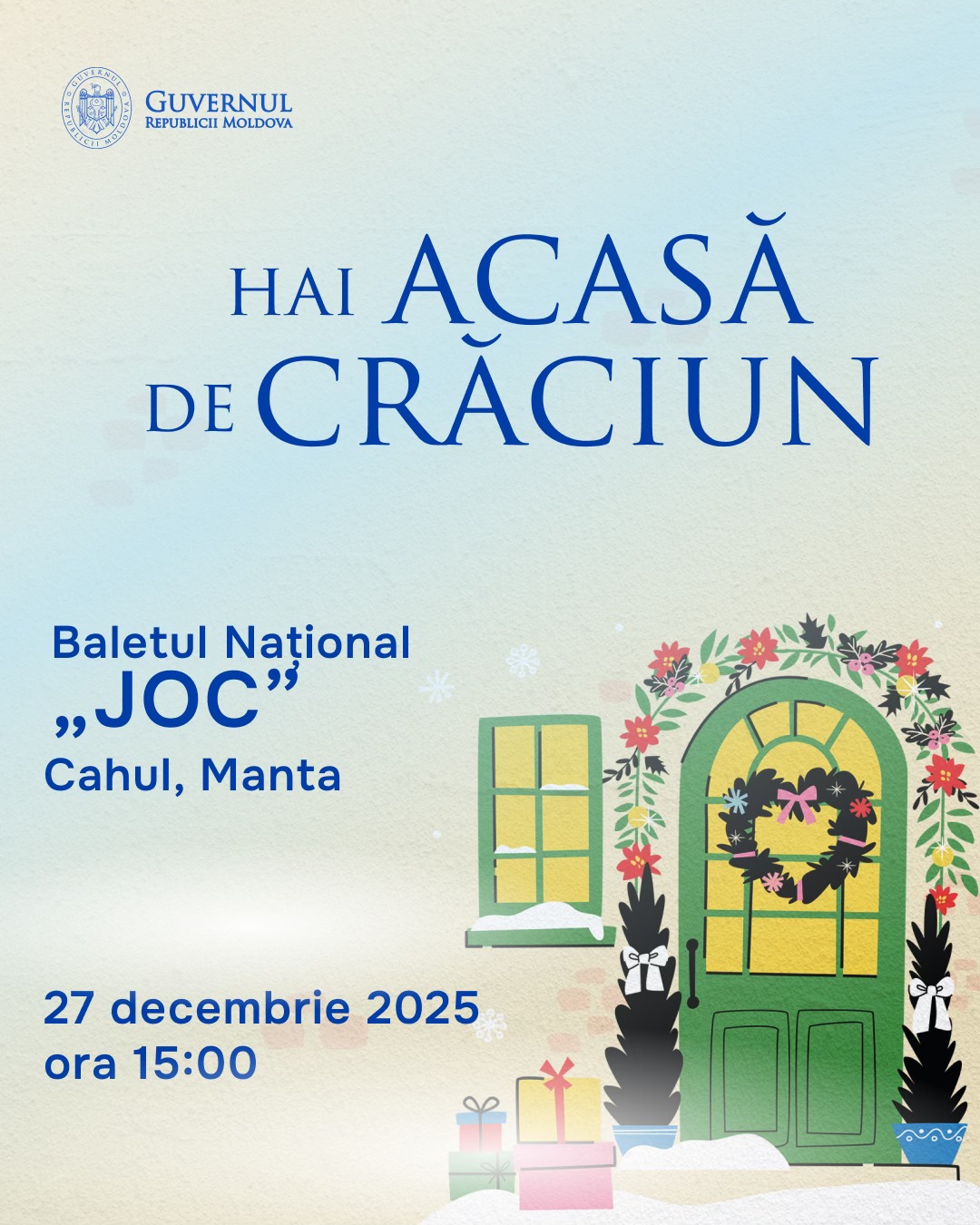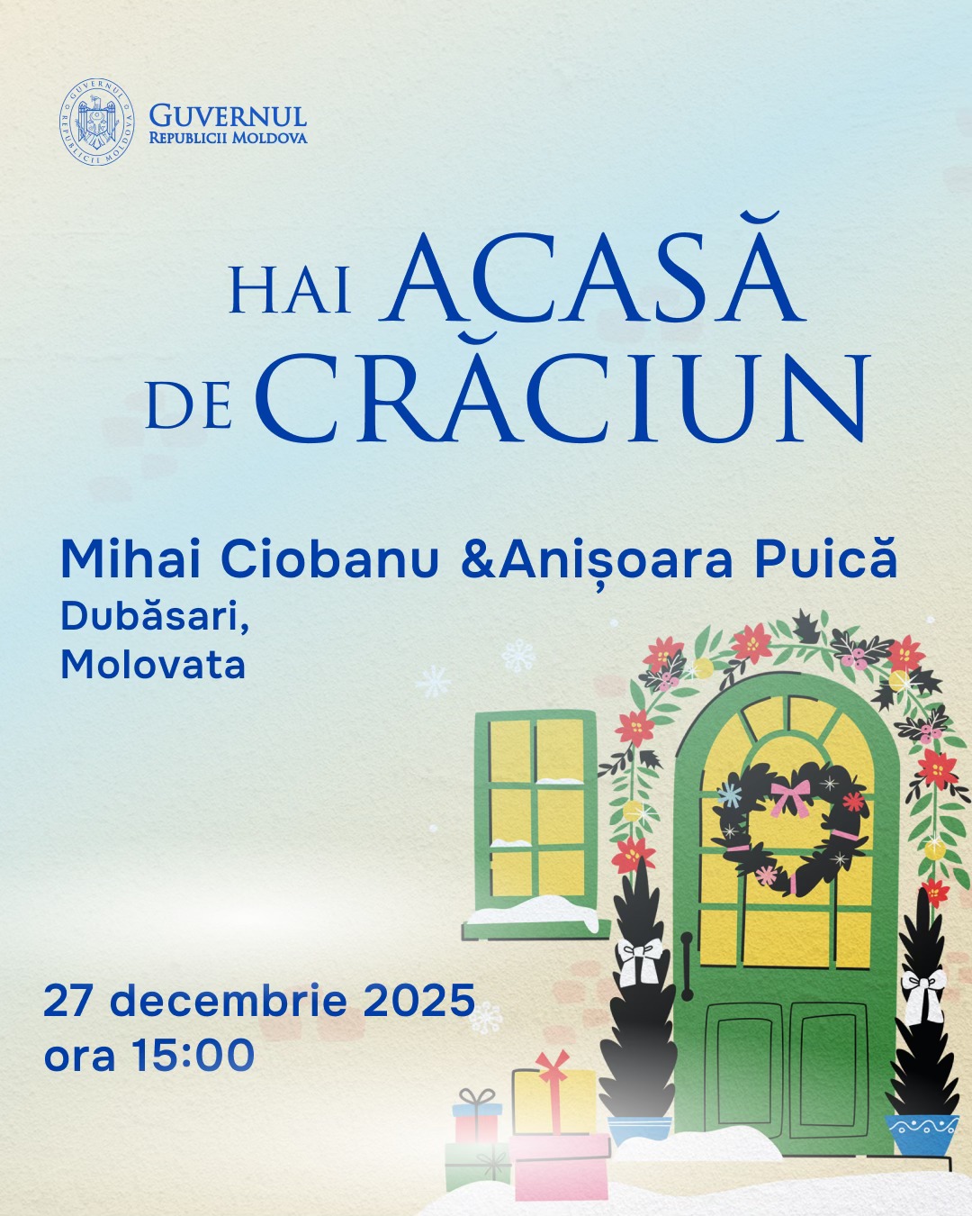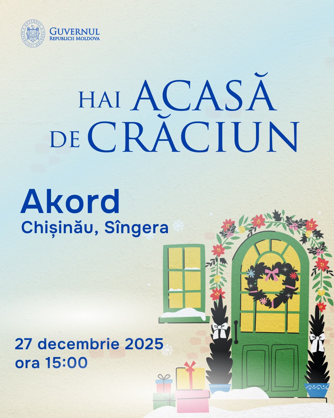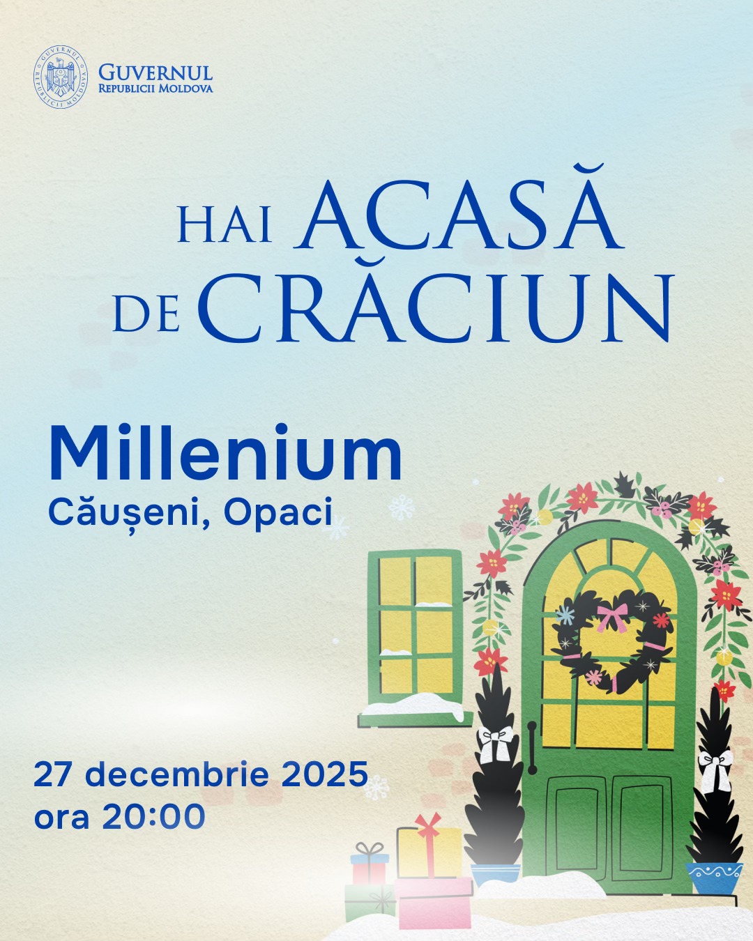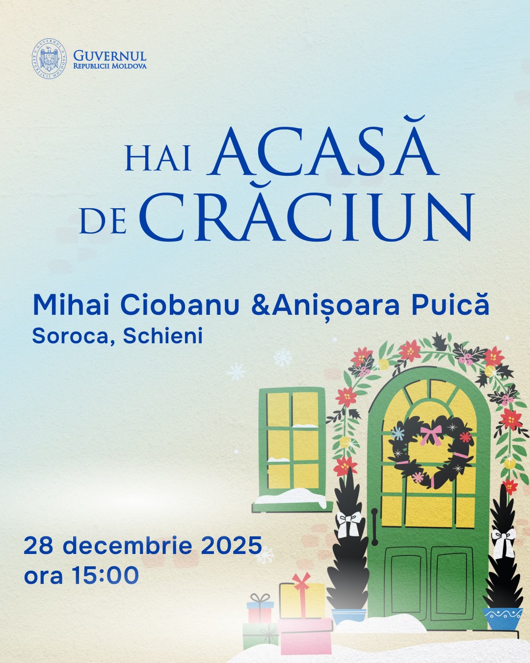 Campania „Hai Acasă de Crăciun” continuă cu spectacole susținute de artiști autohtoni în mai multe localități din țară. În următoarele zile, evenimentele vor fi organizate pentru locuitori din raioanele Dubăsari, Cahul, Căușeni, Orhei, Soroca, Șoldănești, Nisporeni și municipiul Chișinău. Accesul este gratuit, transmite MOLDPRES.