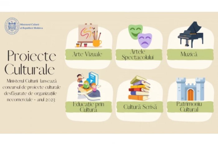Chişinău, 22 nov. /MOLDPRES/. Ministerul Culturii anunță lansarea concursului de proiecte culturale, desfășurate de organizațiile necomerciale, pentru anul 2023. Bugetul constituie cinci milioane de lei (circa 257 mii de euro), informează MOLDPRES.