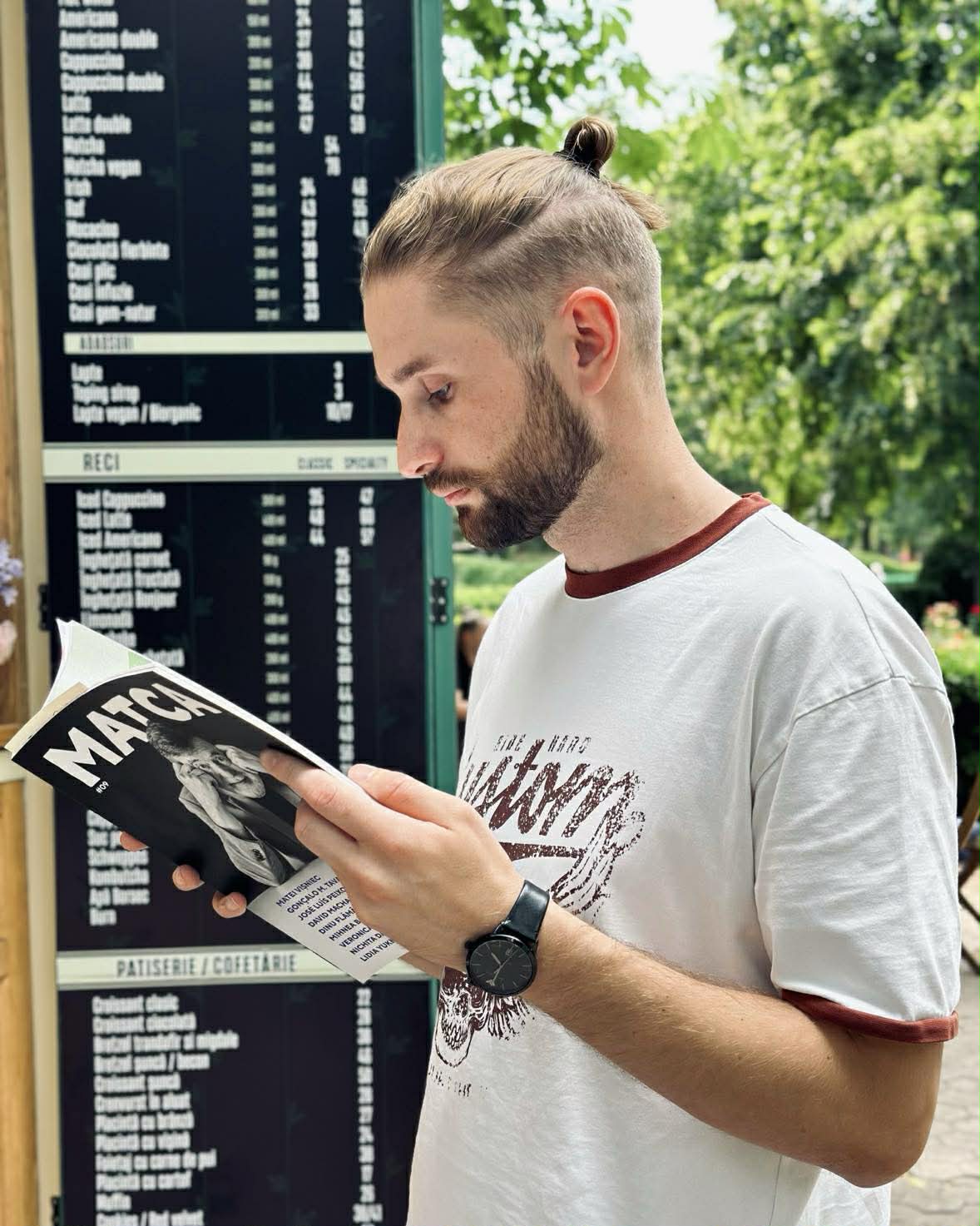 „M-am îndrăgostit de literatură, care m-a și adus în librărie. Dar nu vreau cu asta să promovez o dată-n plus pista aceasta greșită după care se conduc cei care vor să se angajeze în librării – cum că acolo și-ar satisface pofta lor de citit. Nu, am ajuns în librărie cu același scop cu care am mers și la facultatea de Filologie, să învăț literatura, să învăț cu ce „se mănâncă” aceasta, ce se publică, cum se publică, cine scrie literatura adevărată și cine se joacă de-a literatura (n-am înțeles încă!) și, în cele din urmă, cu ce mă aleg eu din toate astea, ce mi se potrivește mie, mai departe, dacă aleg să mă dedic ei”, a declarat tânărul.