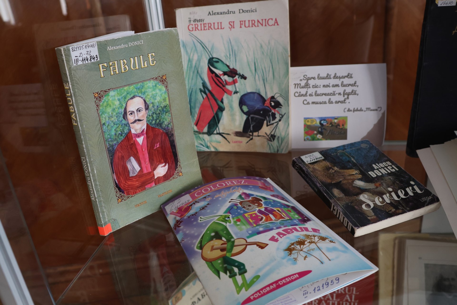 Primul, „Opera literară a lui Alexandru Donici”, include ediții de colecție, volume de fabule și traduceri realizate de scriitor, reliefând talentul său de a adapta satira moralizatoare la realitățile spațiului românesc.