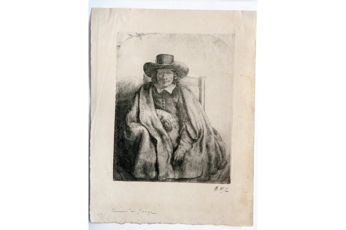 Lucrarea ”Portretul lui Clement de Longhi” este realizată în anul 1651, utilizându-se tehnica acvaforte. Autorul îl reprezintă pe binecunoscutul negustor, care a editat nenumărate stampe ale maestrului. Chipul acestuia apare încadrat de un păr blond, ușor „umbrit” de o pălărie cu boruri largi, cu o privire pătrunzătoare, care trădează omul de afaceri. Rembrandt aduce în evoluția formelor și a concepțiilor artistice un nou umanism, care pune pe primul plan viața lăuntrică a personajului și frământarea sufletească în fața marilor probleme ale existenței. Pe el îl interesează adevărul uman desprins din străfundurile sufletești, valoare morală a conștiinței umane. De aceea operele sale au o intensitate de trăire atât de emoționantă.