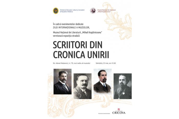 În contextul evenimentelor dedicate Zilei Internaționale a Muzeelor, Muzeul Național de Literatură „Mihail Kogălniceanu” a vernisat expoziția stradală „Scriitori din cronica Unirii”, dedicată lui Constantin Stere, Alexei Mateevici, Pan Halippa și lui Ștefan Ciobanu. Curatorii expoziției sunt Sergiu Stanciu și Vasile Malanețchi. Potrivit lui Vasile Malanețchi, expoziția cuprinde patru compartimente consacrate celor patru înaintași. ”Constantin Stere a fost romancier și publicist, Pan Halippa – poet și publicist, Ștefan Ciobanu – istoric literar, profesor la Universitatea din București, vicepreședinte al Academiei Române în 1940, Alexei Mateevici – preot și poet național. În expoziție am prezentat colecțiile muzeului și câteva fotografii din colecții private”, a precizat Vasile Malanețchi.