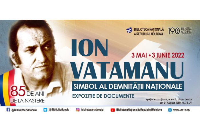 Chişinău, 3 mai. /MOLDPRES/. La Biblioteca Națională a Republicii Moldova a fost deschisă astăzi expoziția de documente și publicații din colecțiile BNRM cu genericul „Ion Vatamanu – simbol al demnității naționale”, prilejuită de aniversarea a 85-a a nașterii regretatului poet, publicist, eseist, traducător, chimist și politician, informează MOLDPRES.