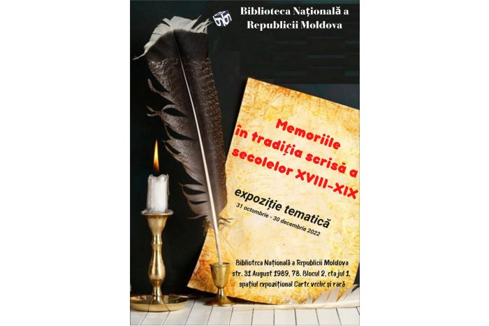 Chişinău, 1 nov. /MOLDPRES/. La Biblioteca Națională a fost deschisă astăzi expoziția de documente cu genericul ”Memoria în tradiția scrisă a secolului XVIII-XIX”, informează MOLDPRES.