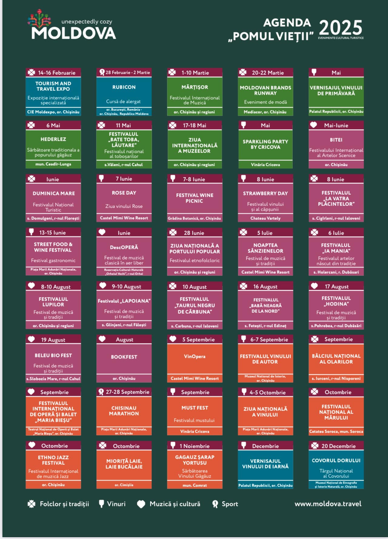 În plus, agenda ajută la identificarea celor mai bune perioade pentru vizitarea țării, devenind un instrument valoros atât pentru turiștii care descoperă Moldova pentru prima oară, cât și pentru membrii diasporei care doresc să regăsească valorile culturale moldovenești.