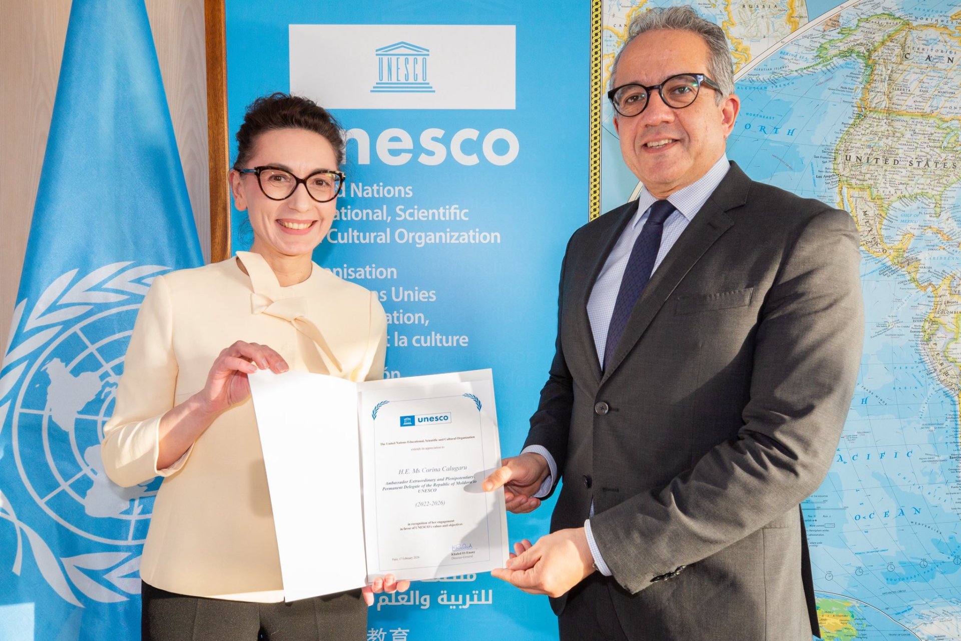La încheierea întrevederii, ambasadorului Corina Călugăru i-a fost înmânat certificatul de finalizare a mandatului, gest simbolic care marchează încheierea unei etape importante de reprezentare diplomatică și de promovare a intereselor Republicii Moldova în cadrul UNESCO.