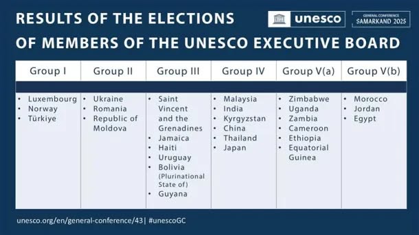 Din cele 27 de state care intră în noua componență a Consiliului Executiv, Moldova a fost desemnată din partea grupului regional alături de România și Ucraina, în urma unei competiții cu patru state candidate. Mandatul oferă țării noastre oportunitatea de a consolida prezența și influența în domeniile educației, culturii și științei, contribuind activ la proiectele și direcțiile strategice globale ale UNESCO.
