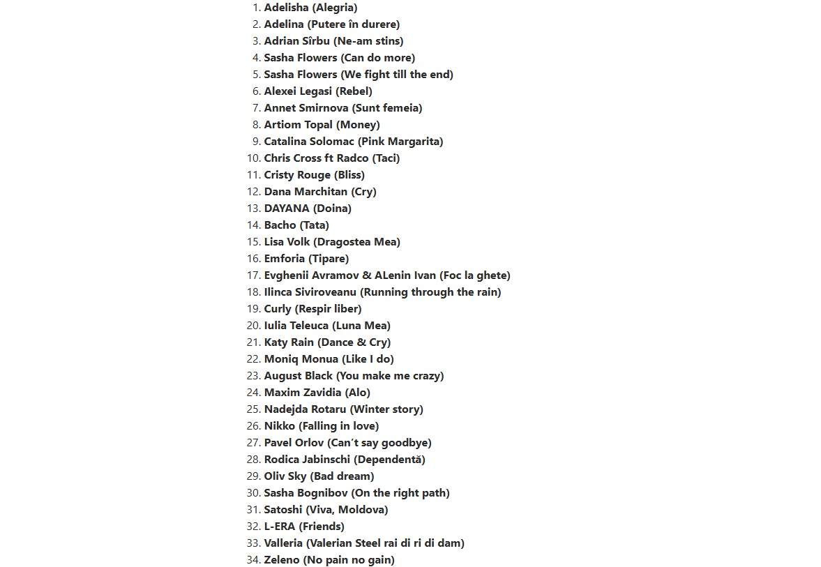 Potrivit TRM, în urma evaluării preliminare a materialelor depuse, producătorii muzicali ai selecției au aprobat lista celor 34 de piese care vor intra în runda audițiilor live. Aceasta se va desfășura pe 16 decembrie, începând cu ora 11:00, în studioul 2 al televiziunii publice.