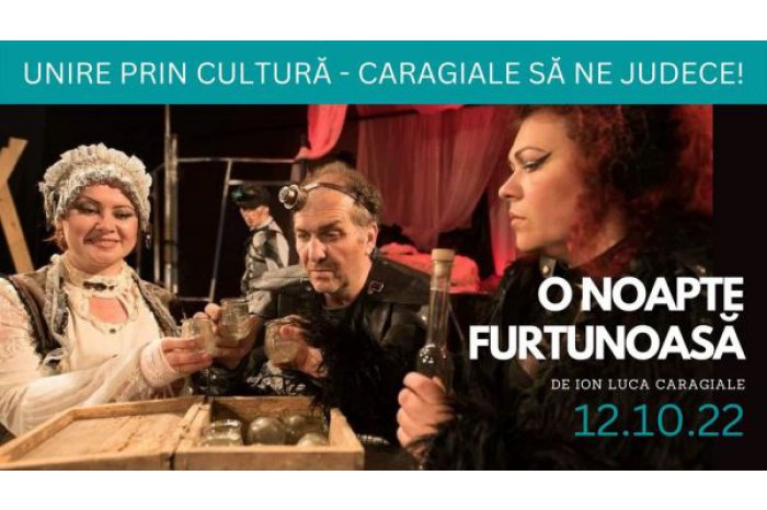 Miercuri, 12 octombrie, la ora 18.30, Teatrul de Artă din Deva va prezenta pe scena Teatrului Național ”Satiricus Ion Luca Caragiale” spectacolul ”O Noapte furtunoasă” de I. L. Caragiale, în regia lui Mihai Panaitescu.