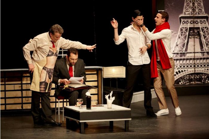 Sâmbătă, 8 octombrie, la ora 18.30, teatrul readuce în scenă spectacolul ”Iubirea la proști”, comedie romantică de Francis Veber, în regia lui M. Chris Nedeea (România). Este vorba de o comedie franceză, cu umor rafinat și replici explozive, unde situațiile absurde și confuziile amuzante se țin în lanț.