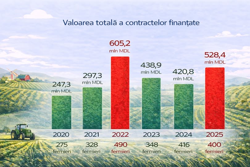 Agenția pentru Dezvoltarea și Modernizarea Agriculturii (ADMA) a prezentat bilanțul activității pentru anul 2025, raportând o evoluție general pozitivă a programelor de finanțare dedicate sectorului agricol. Comparativ cu anul 2024, volumul total al finanțărilor acordate a crescut cu peste 100 de milioane de lei, confirmând consolidarea sprijinului financiar oferit fermierilor din Republica Moldova, transmite MOLDPRES.