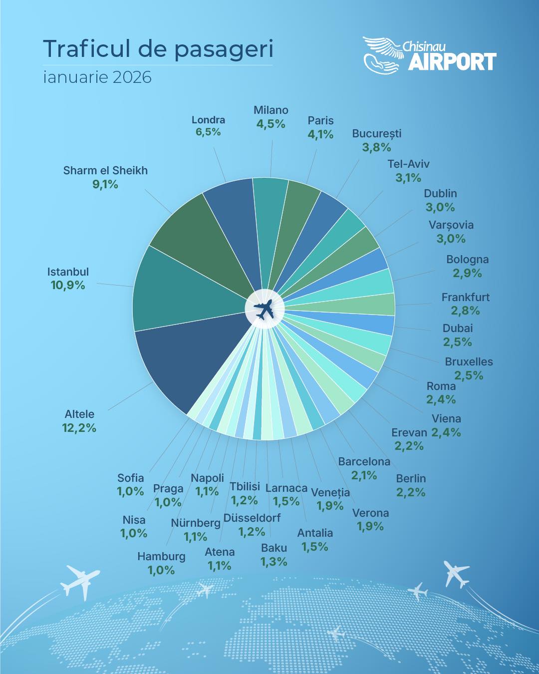 Aceste date reflectă atât creșterea constantă a interesului pentru zborurile din și spre Chișinău, cât și diversificarea continuă a rețelei de destinații, consolidând poziția Aeroportului Internațional „Eugen Doga” ca principal hub aerian al Republicii Moldova, arată sursa cutată.