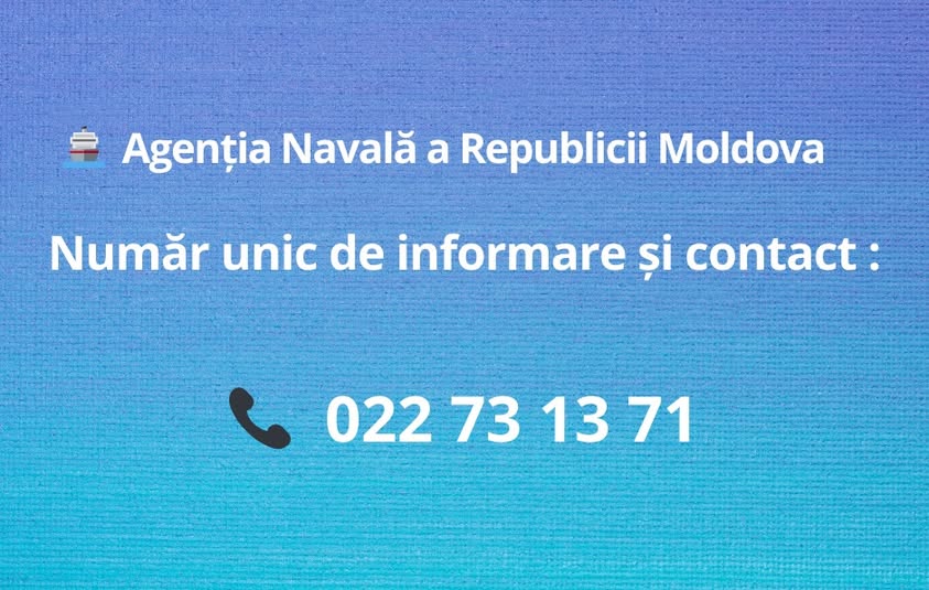 Agenția Navală a Republicii Moldova a anunțat lansarea unui număr unic de informare și contact – 022 73 13 71 – destinat facilitării accesului la informații oficiale și consultanță în domeniul naval. Inițiativa are drept scop îmbunătățirea comunicării cu publicul și oferirea unor răspunsuri rapide, clare și accesibile, transmite MOLDPRES.