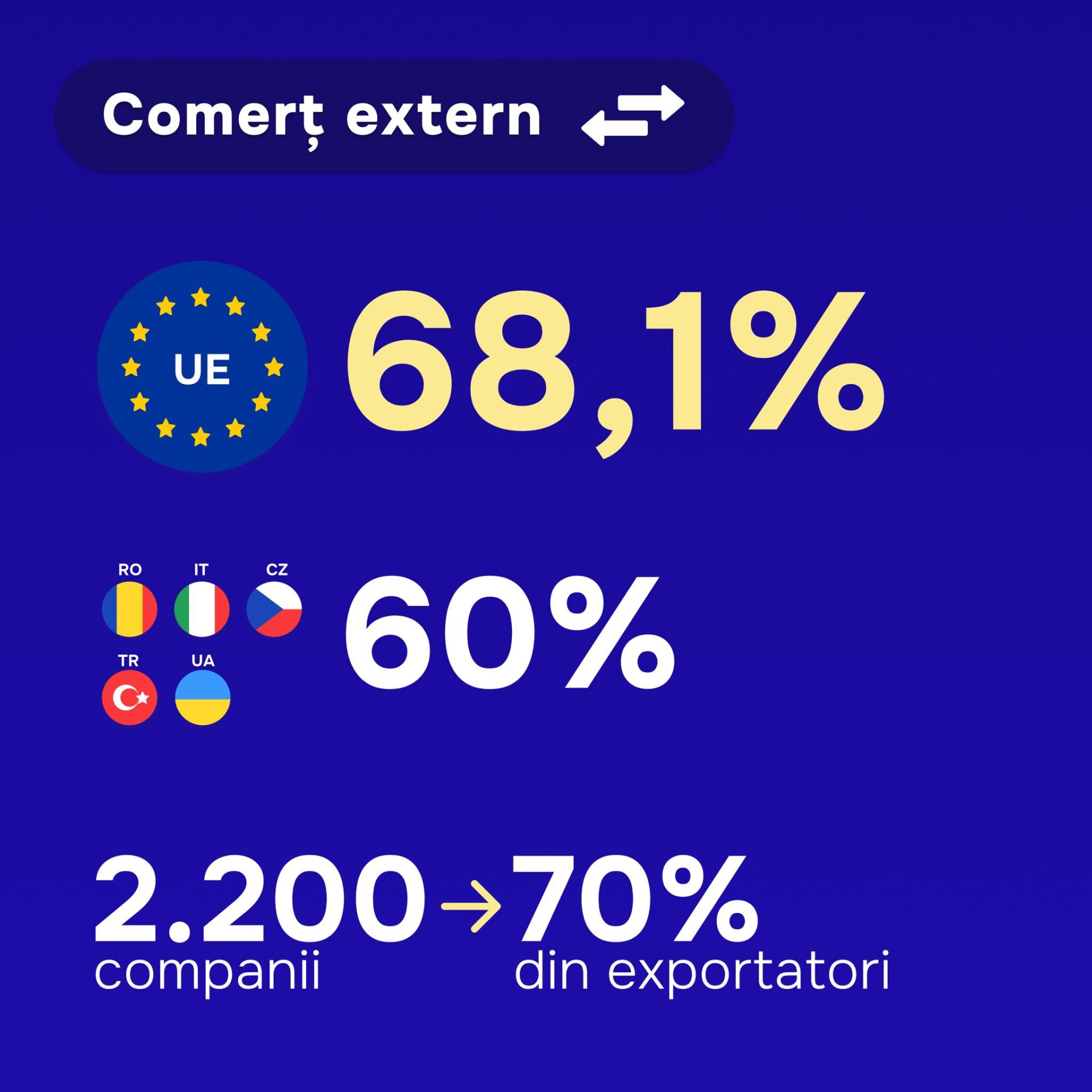 Datele statistice relevă că în prezent aproape 70% din exporturile Republicii Moldova sunt orientate către Uniunea Europeană. România, Turcia, Italia, Cehia și Ucraina concentrează peste 60 la sută din exporturi. În prezent, peste 2200 de companii moldovenești își exportă produsele către UE, reprezentând peste 70 la sută din totalul exportatorilor. În acest context, Eugeniu Osmochescu a subliniat că o prioritate pentru perioada următoare va fi deschiderea unor noi piețe de desfacere pentru produsele fabricate în țara noastră.