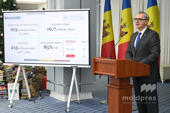 „Ne dorim ca Republica Moldova să crească la un model economic bazat pe investiții și pe inovare. Per total, în 9 luni din 2025, am avut investiții de 16,7 miliarde de dolari. (...) Avem intrări nete de capital de 213 milioane de dolari în prima jumătate a anului, o creștere de trei ori în comparație cu aceeași perioadă din 2024. Reinvestiții, avem 215 milioane de dolari, o creștere de 50% în comparație cu 2024. Ne propunem ca circa 55% din bugetul pentru 2026 să fie destinat investițiilor, elaborarea proiectelor de investiții, implementarea acestora, cu un impact pozitiv asupra cetățenilor, dar și mediului de afaceri”, a afirmat vicepremierul Osmochescu.