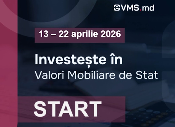 Cetățenii pot investi în valori mobiliare de stat, în cadrul unei noi perioade de subscriere anunțată de Ministerul Finanțelor pe platforma eVMS.md. Aceasta va fi lansată luni, pe 13 aprilie și se va încheia pe 22 aprilie, transmite MOLDPRES.
