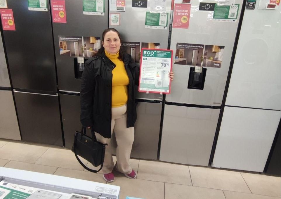 EcoVoucher acoperă până la 70% din costul unui frigider sau al unei mașini de spălat rufe noi, cu o clasă înaltă de eficiență energetică, cu condiția predării spre reciclare a unui aparat vechi de același tip.