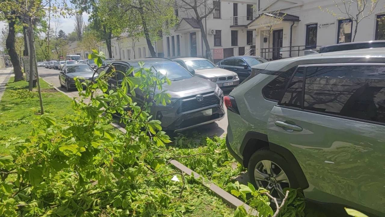 De asemenea, pe bulevardul Dacia din Chișinău, direcția spre Aeroport, circulația a fost îngreunată din cauza crengilor doborâte de vânt.