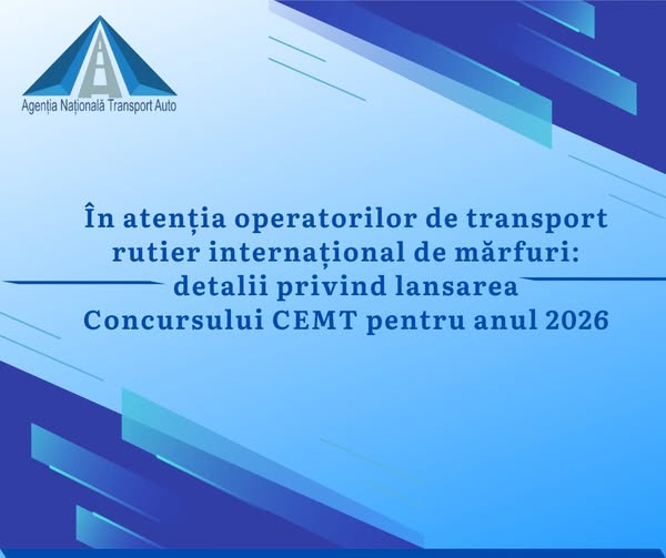 ANTA subliniază că noua dată a lansării Concursului CEMT 2026 va fi comunicată în timp util prin canalele oficiale ale instituției. Reprezentanții agenției dau asigurări că amânarea nu va dezavantaja aplicanții, întrucât atribuirea autorizațiilor nu se face pe principiul „primul venit, primul servit”, ci în baza evaluării echitabile a dosarelor depuse.