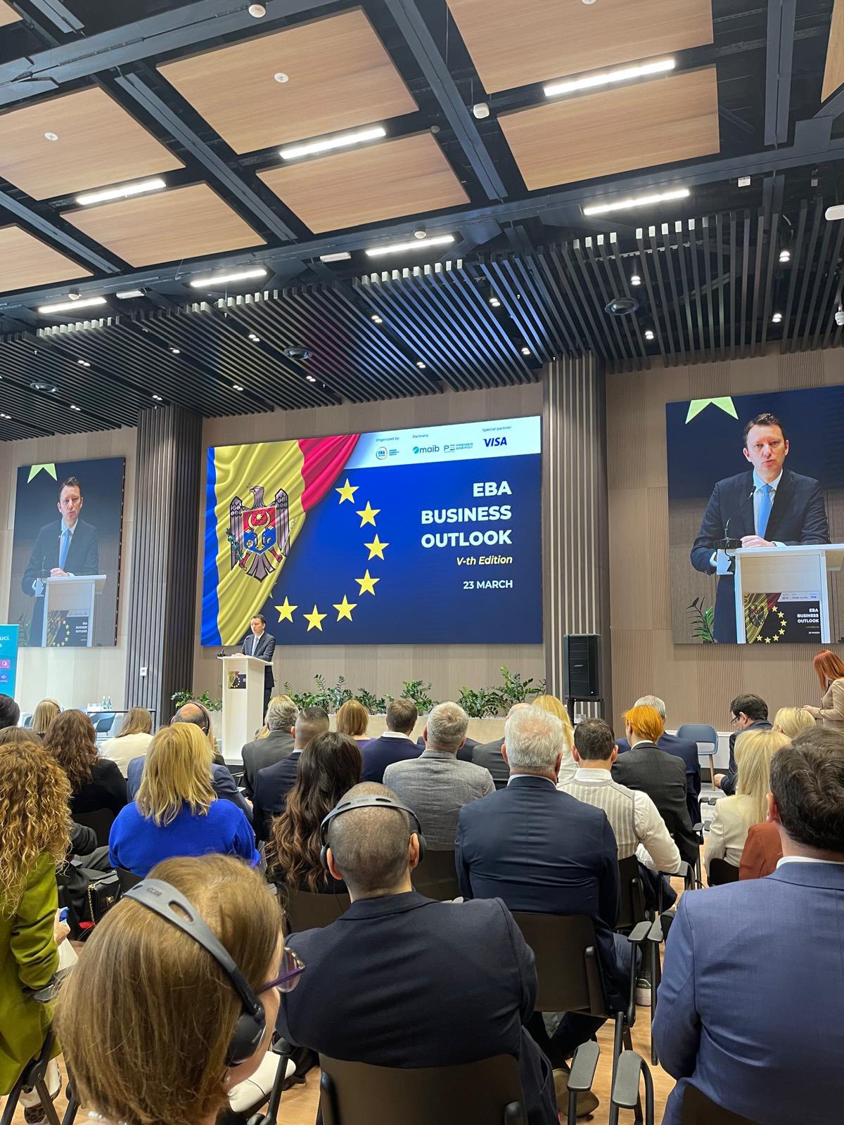 Evenimentul anual EBA Business Outlook oferă o platformă de dialog între autorități și mediul de afaceri, contribuind la identificarea soluțiilor pentru dezvoltarea economică durabilă și valorificarea oportunităților oferite de integrarea europeană a Republicii Moldova.