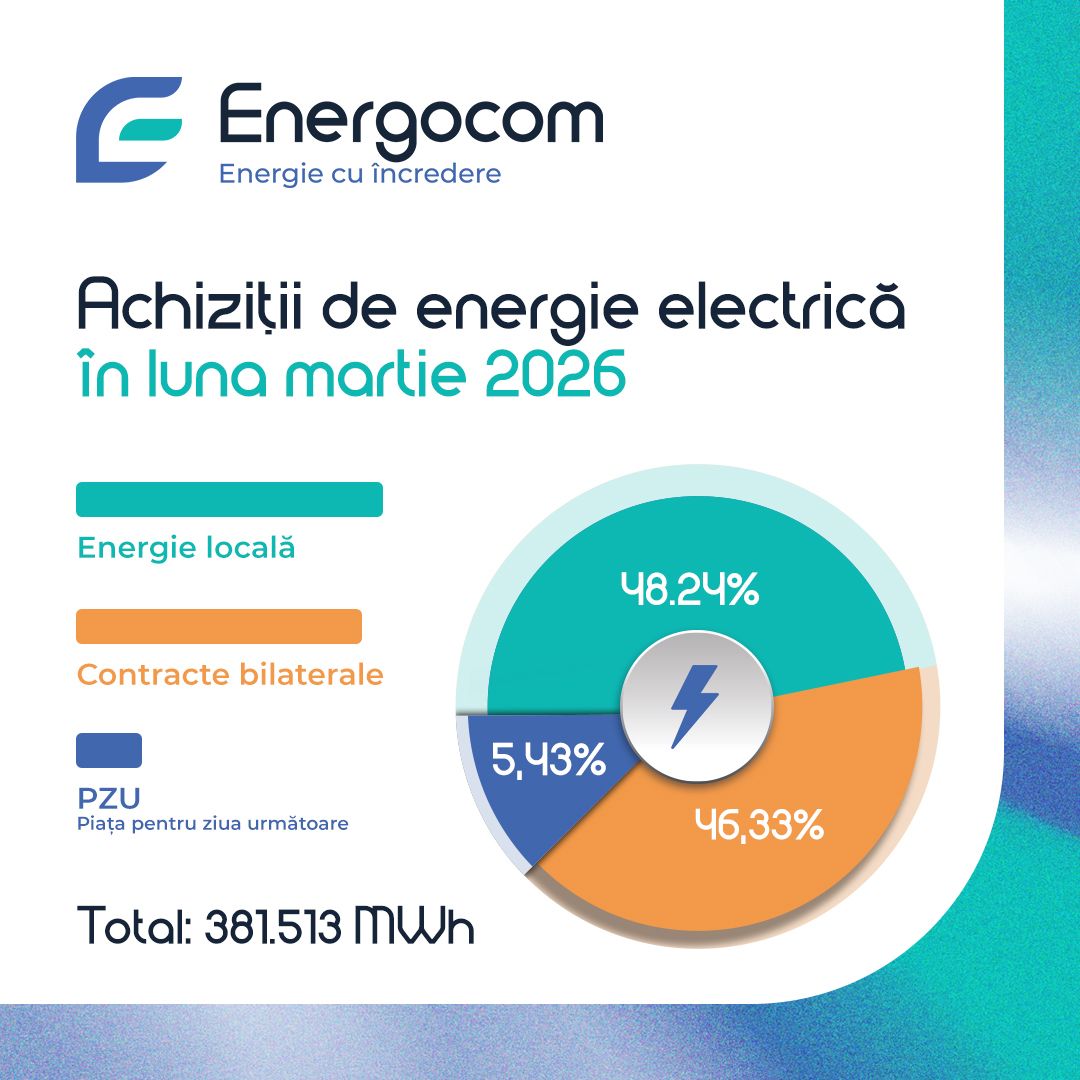 Totodată, din totalul achizițiilor, 46,33% au fost realizate prin contracte bilaterale cu furnizori și producători din România și Ucraina, iar restul 5,43% au fost procurate de pe Piața pentru ziua următoare (PZU).