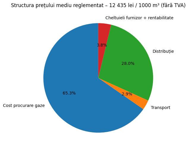 Potrivit calculelor prezentate autorității de reglementare, prețul mediu ponderat de procurare a gazelor naturale destinate furnizării la prețuri reglementate este estimat la 8.206 lei pentru 1.000 m³, iar prețul mediu reglementat de furnizare pentru consumatorii finali, fără aplicarea componentei de corectare a venitului reglementat, constituie 12.435 lei pentru 1.000 m³.