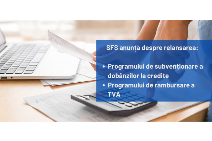 Chişinău, 20 apr. /MOLDPRES/. Serviciul Fiscal de Stat (SFS) a informat că au fost relansate Programele de subvenționare a dobânzilor la credite, precum și a celui de rambursare a TVA, în contextul executării Dispoziției Comisiei pentru Situații Excepționale din Republica Moldova nr.2 din 8 aprilie 2021, transmite MOLDPRES.