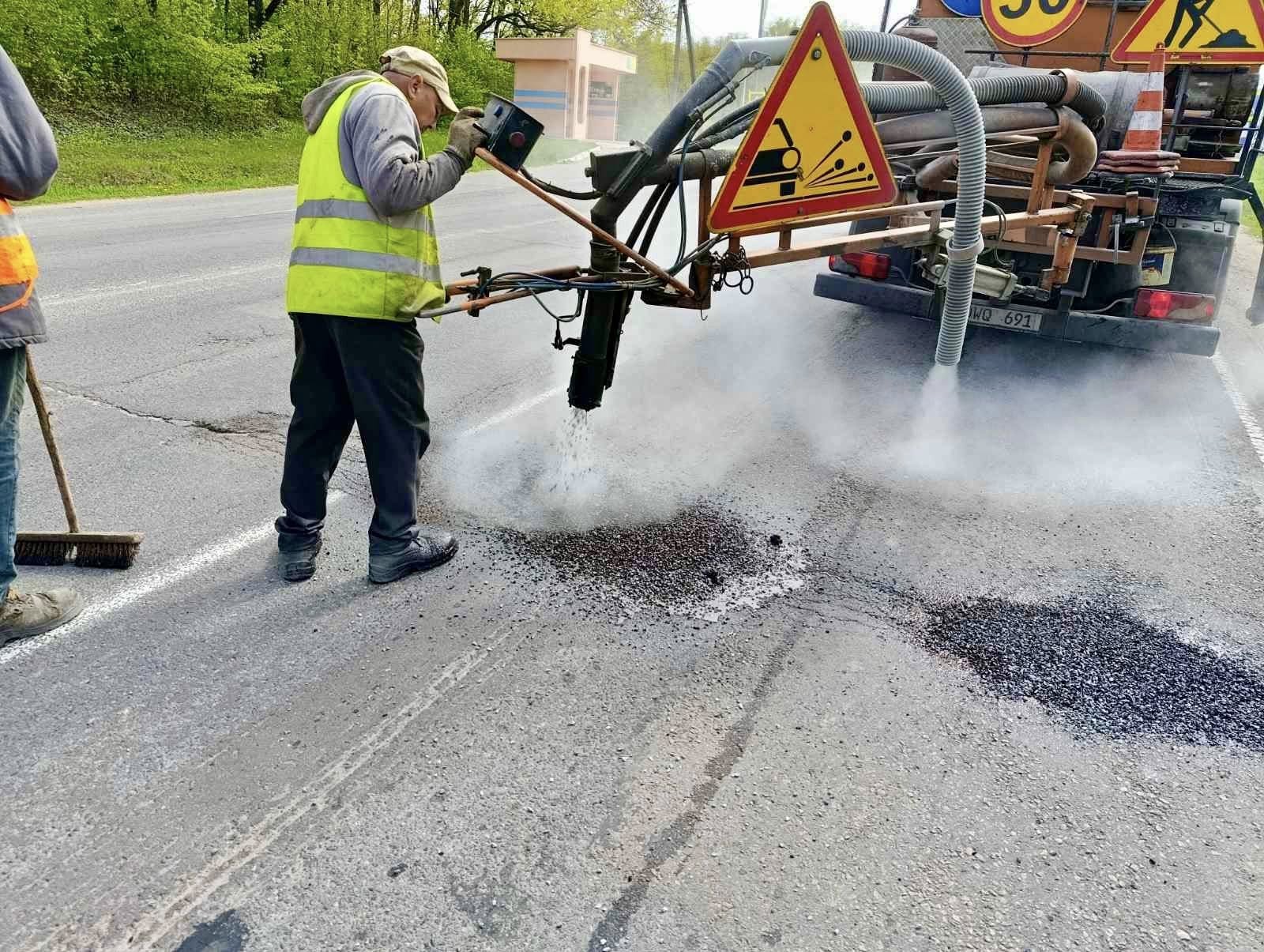 FOTO // Drumarii intervin pe rețeaua națională pentru reparația carosabilului cu mixtură asfaltică caldă