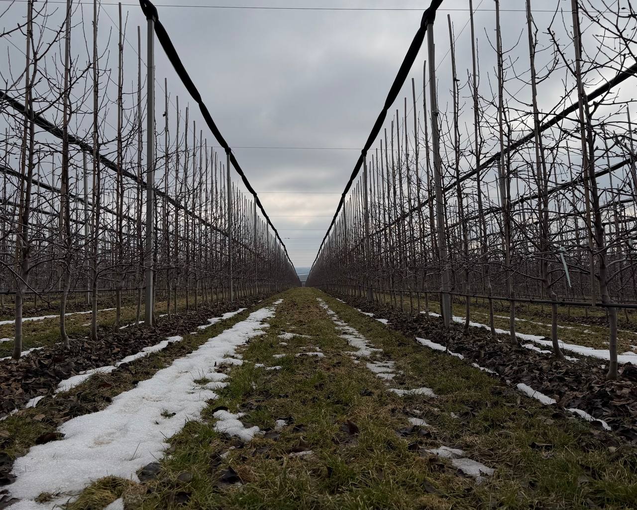 Proiectul dezvoltat împreună cu această companie include aproximativ 45–50 de hectare de livezi de măr și circa 30 de hectare de cireș. În anul precedent au fost instalate plase antigrindină pe aproximativ 55 de hectare, iar lucrările continuă pentru extinderea sistemului pe încă 17 hectare.