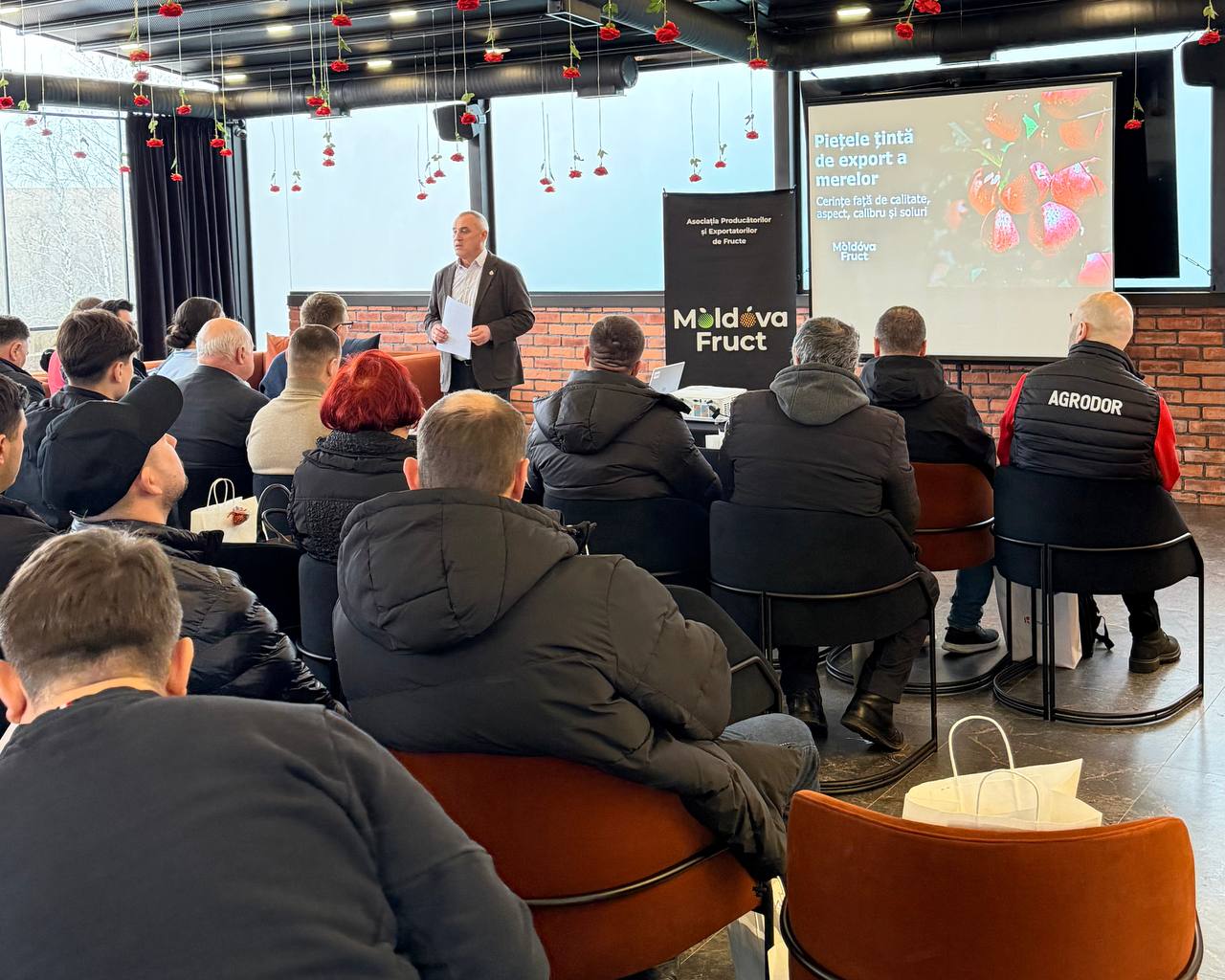 Seminarul organizat în nordul țării face parte din obiectivele Strategiei de sustenabilitate Moldova Fruct pentru perioada 2026–2030, recent validată de Consiliul Asociației. Documentul strategic pune accent pe modernizarea plantațiilor pomicole, creșterea productivității și consolidarea poziției Republicii Moldova pe piața internațională a merelor.