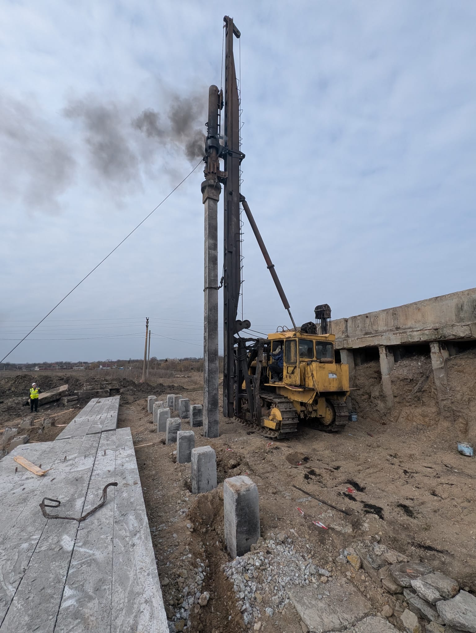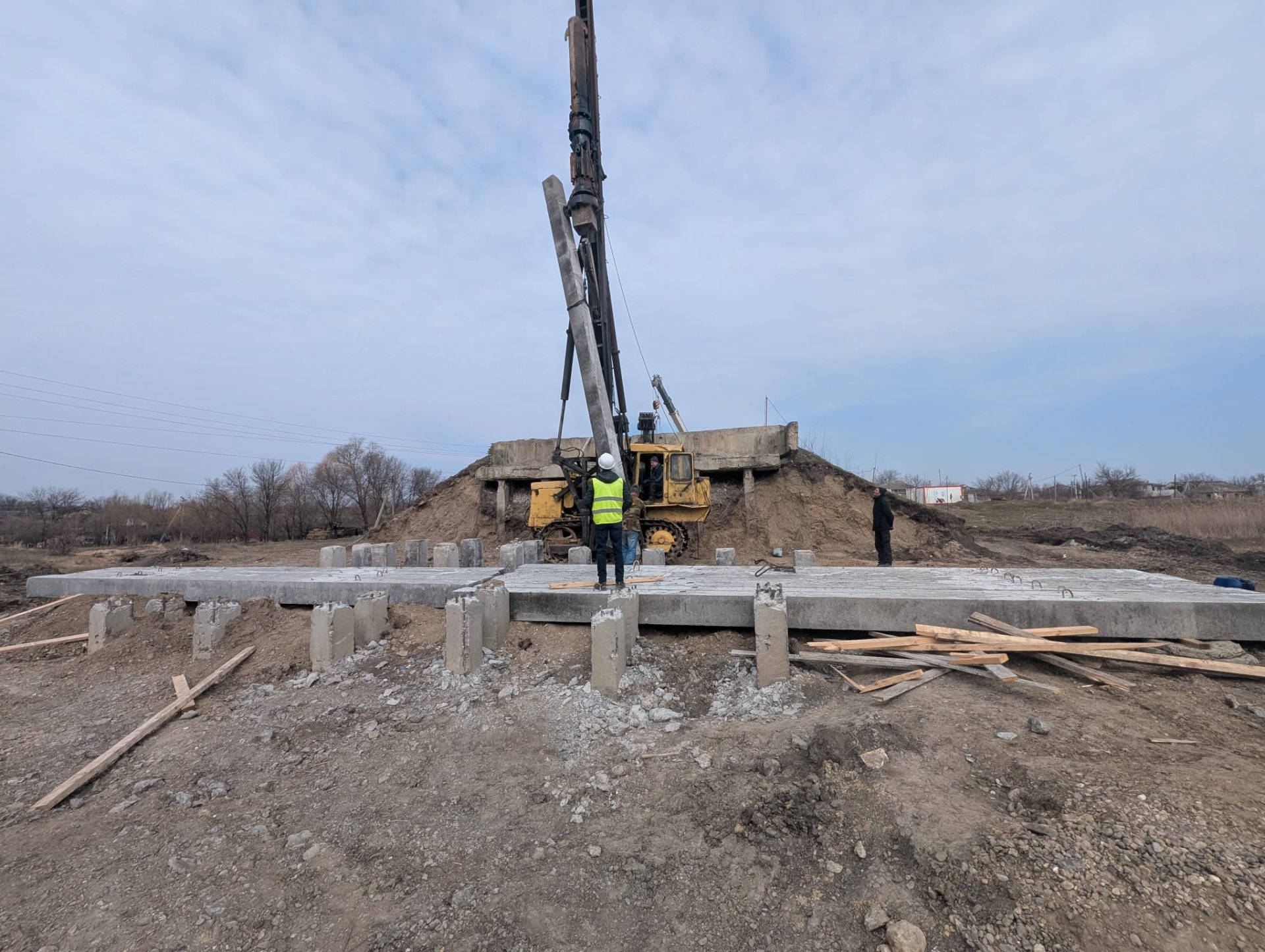 FOTO // Progres pe șantierul de la Fălești unde se lucrează la armarea stâlpilor noului pod de lângă Răuțel